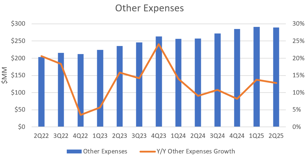 In Q1 and Q2, other expenses grew by 13.7% and 12.7%, respectively. That’s well within the range afforded them. For my bullish scenarios, I actually had 15% Y/Y growth in other expenses and for my own DDI projections, I had 13%. The 10% number was what would be required if they hit their guidance. Since they are above and beyond that guidance, there is flexibility here.