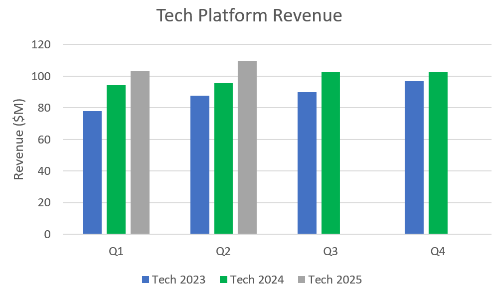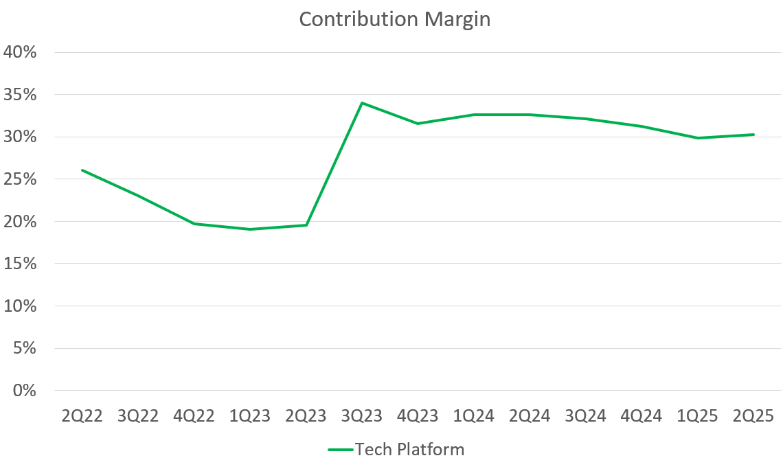 Tech platform segment growth needs to be ~25% and contribution margins need to be in the mid 30s.