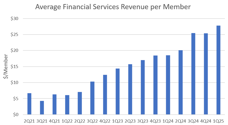 I’m not building any of that into my predictions here. I’m assuming that they continue to monetize members at the same rate as last quarter, but that still results in financial services revenue of $322.6M, which is still an 81% YoY increase. If they managed to expand the LPB, this could be a low estimate.