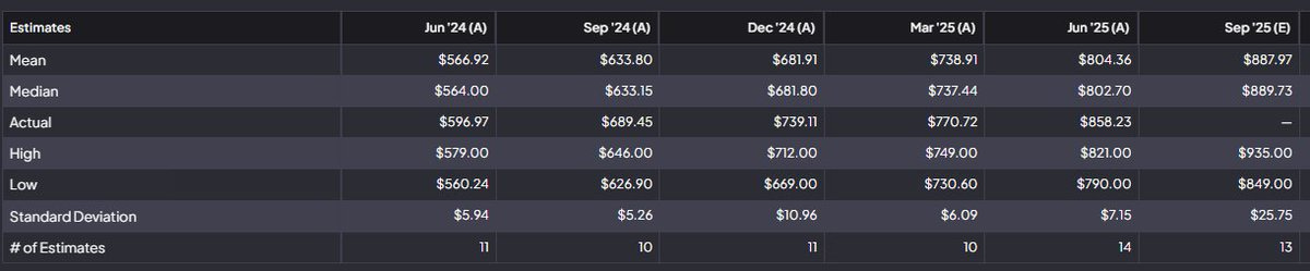 Their guidance was so sandbagged last quarter that I expect we see big upward revisions this quarter. Even though they’ll still guide conservatively for Q4, I expect the revenue guide of $3,375 for FY25 will be revised upward to a minimum of $3,500M. Analyst estimates are $3,448M. I think for EBITDA the upward revision will be from $960M to above a billion at $1,020M in EBITDA (analyst estimates are $982M). I estimate that their EPS guidance raise will be from $0.31 to $0.37 (analyst estimates are currently $0.32). I’m very confident we see another triple beat.