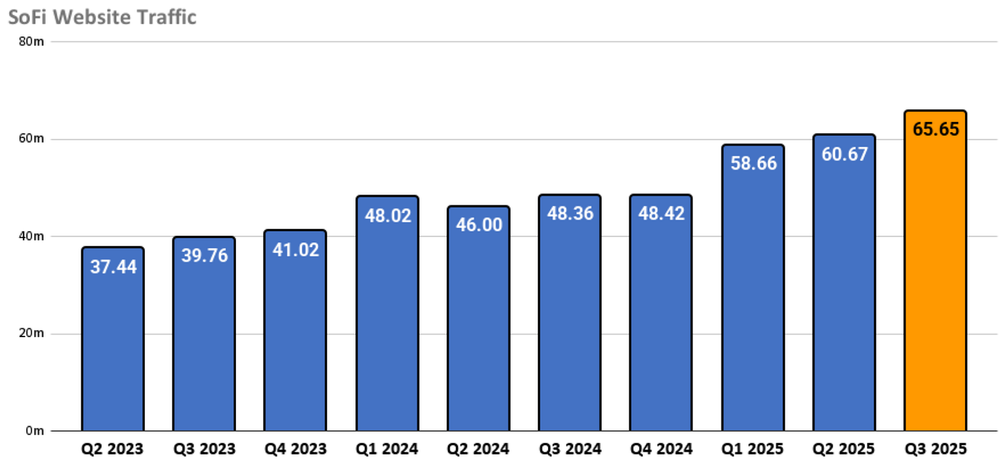 Rates came down meaningfully in Q3 and SoFi is obviously putting an emphasis on home loans. There has been a lot of marketing, they’ve added HELOCS, and just this week they announced the $3M expansion of their Charlotte offices and stated they plan on hiring several hundred new employees. Their Charlotte office is the office they acquired when they purchased Wyndham Capital a few years ago. I’m guessing business is going well, and this is a key growth area they’ve identified for the next few years. I think Home Loans sets a new ATH in Q3 with $950M