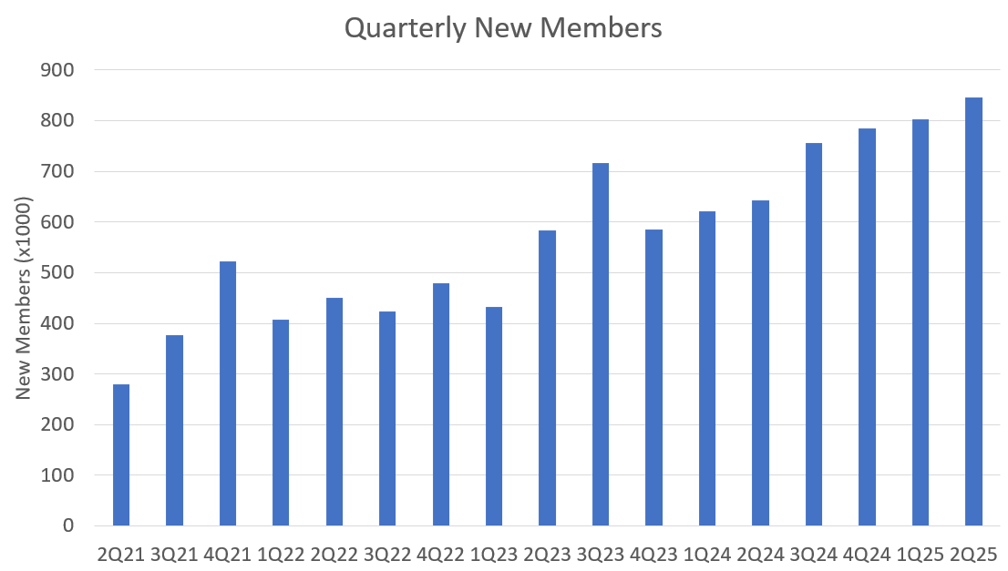 Moreover, Q3 has shown a sequential increase of more than 100k new members in each of the last two years. In 2023, there were 584k new members in Q2 followed by 717k new members in Q3. In 2024, they followed up a 643k new member Q2 with a 756k new member Q3.