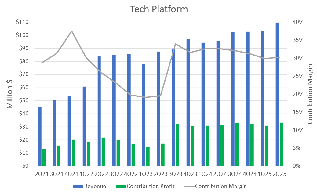 On the Tech Platform side of things, we've been operating in the low to mid-20s from a contribution margin perspective. Part of that is as a result of the Technisys acquisition. Pre-acquisition, we were operating in the low 30s. We've been investing pretty aggressively in the platform and the people to really build out a combined offering and scale that business. And as we start to get more and more scale in that business, we do expect to get that to a 40%+ long-term margin.