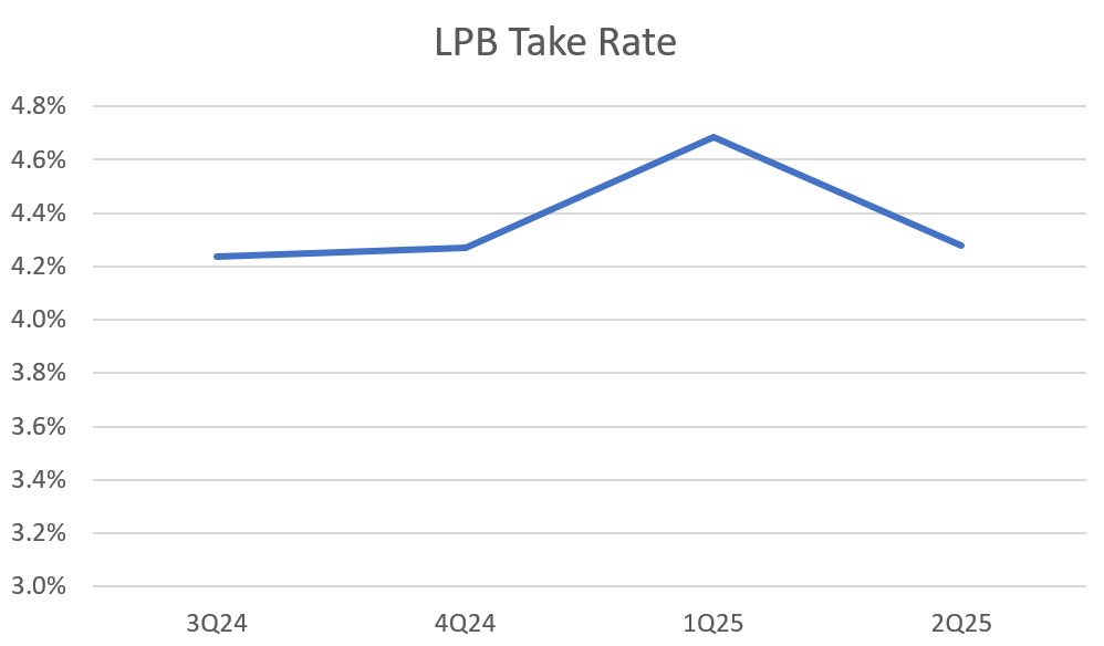 More on originations in a second. The LPB take rate normalized back down to 4.28%, which is very close to where it was in Q3 and Q4 of last year.